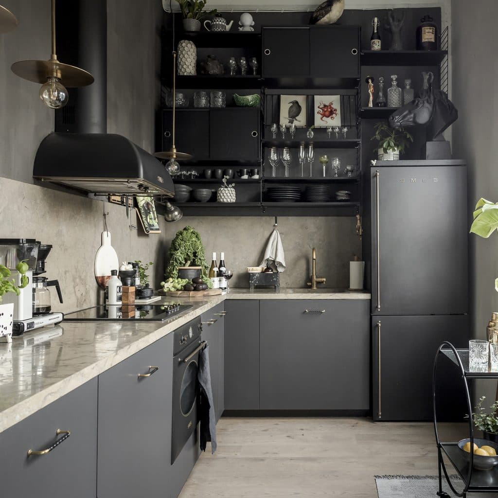 Det märks att Siri Netzell Gärde jobbar med styling. Här är bilder på hennes mörkgråa kök med våra släta luckor och mässingsdetaljer.