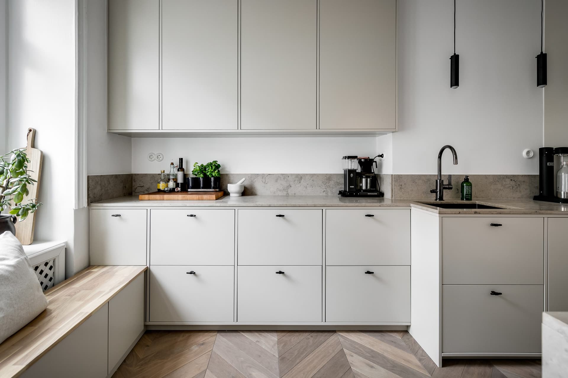 Håll bänkskåpen minimalistiska, med en till tre lådfronter per skåp